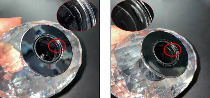 Vòi xịt hàng thật trong mờ. Tuy nhiên, vòi xịt hàng giả có màu trắng đục như sữa.
