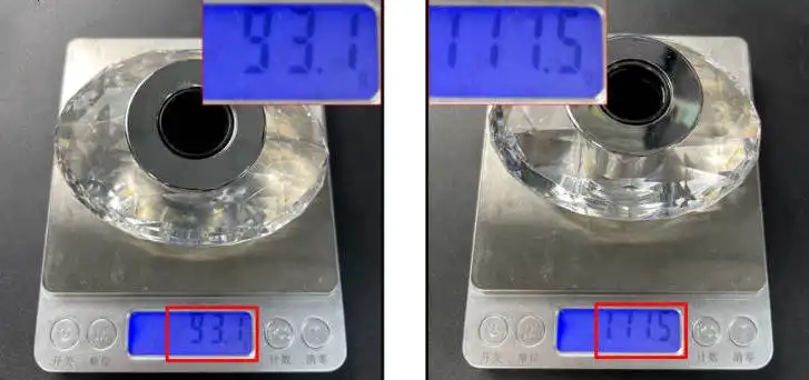 Nắp chai hàng thật nặng khoảng 93,1 gram. Tuy nhiên, nắp chai hàng giả nặng khoảng 111,5 gram.